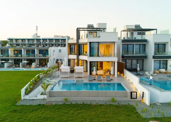 4の寝室のAqua Beachfront Villas - Villa 1 アヤナパは、アギア・ナパ修道院から徒歩25分以下です。 Aqua Beachfront Villas - Villa 1は、お客様のリラクセーションのためにホットタブがあります。